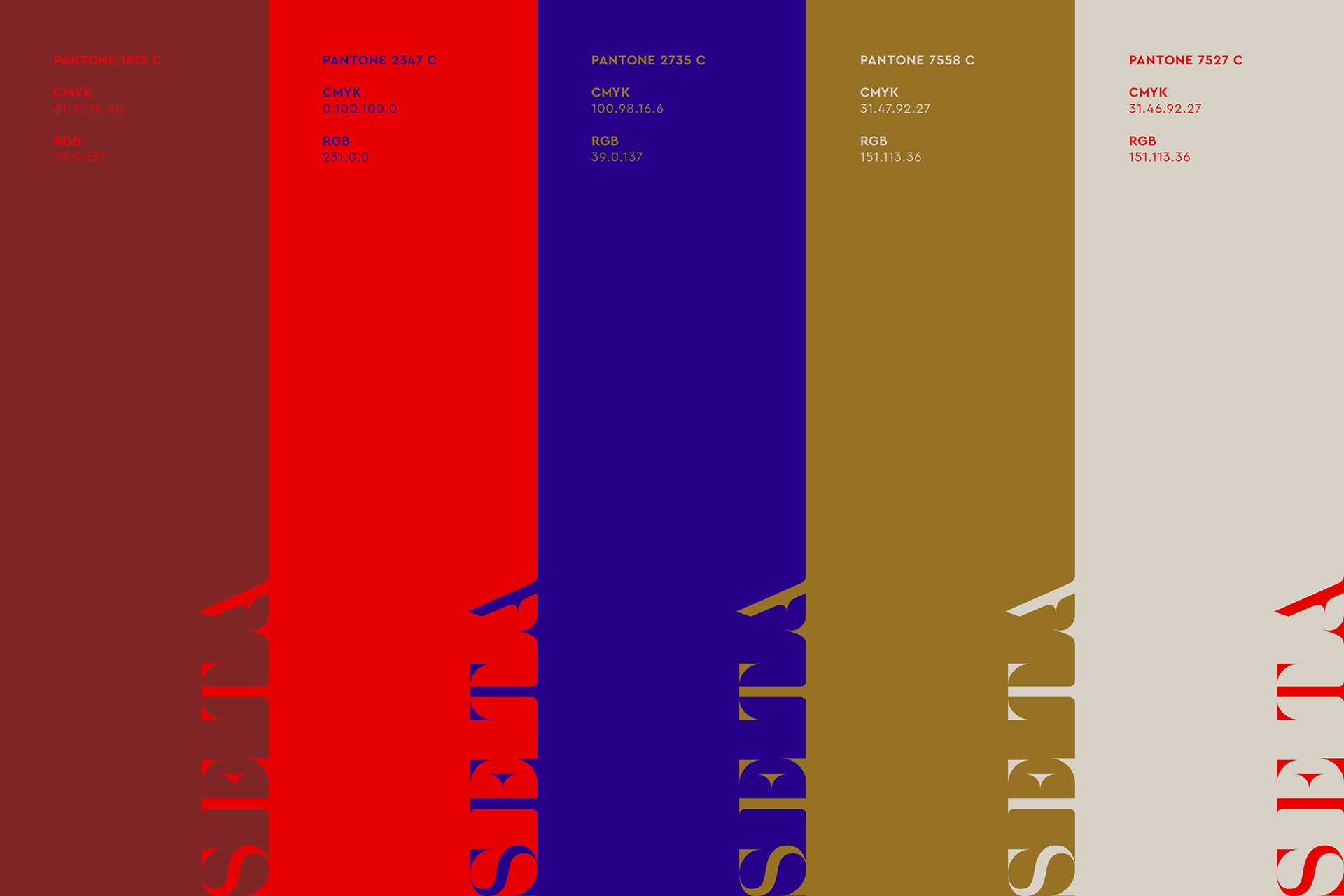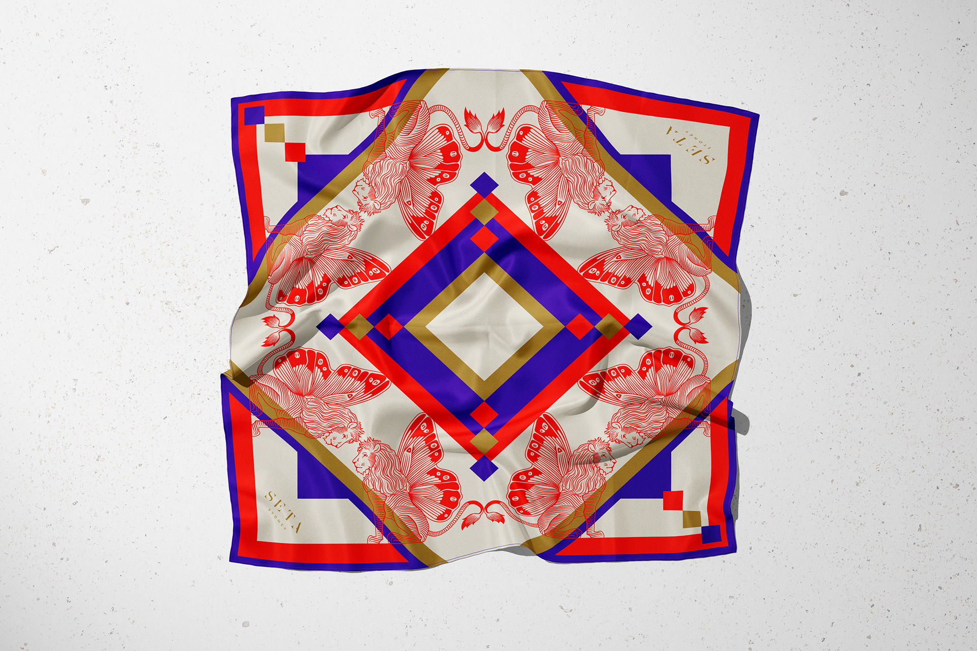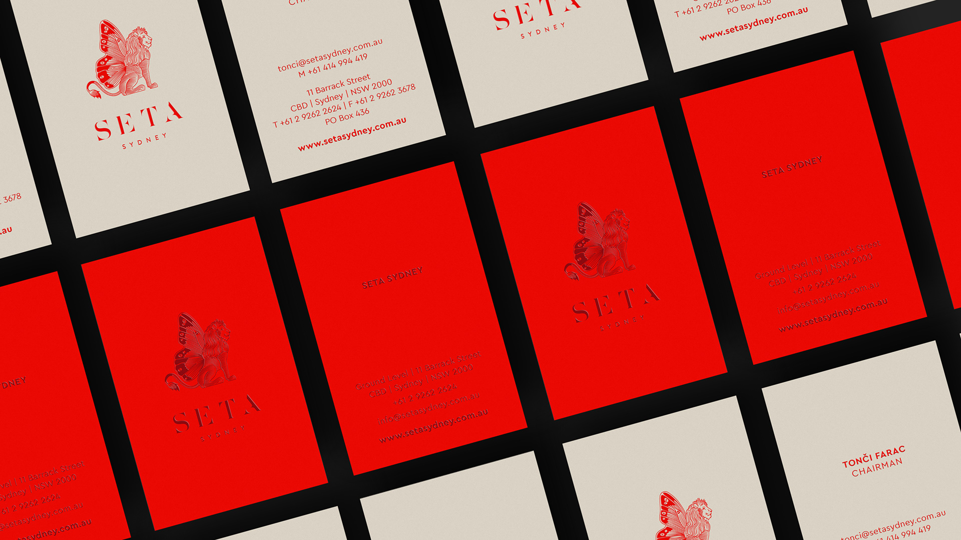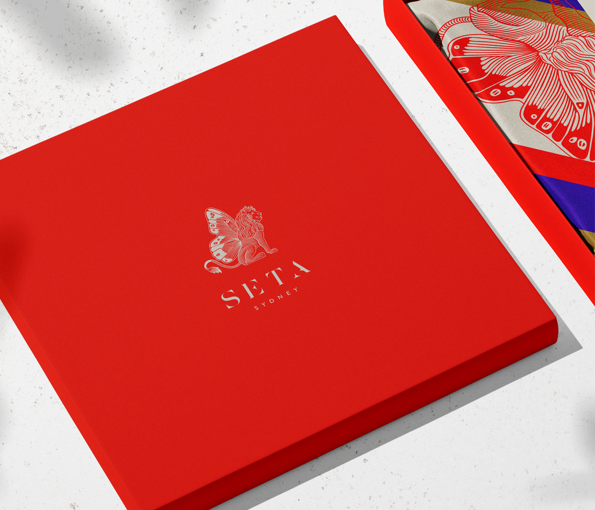 The logo concept originates from the name Seta, combining the Lion of Venice with a butterfly