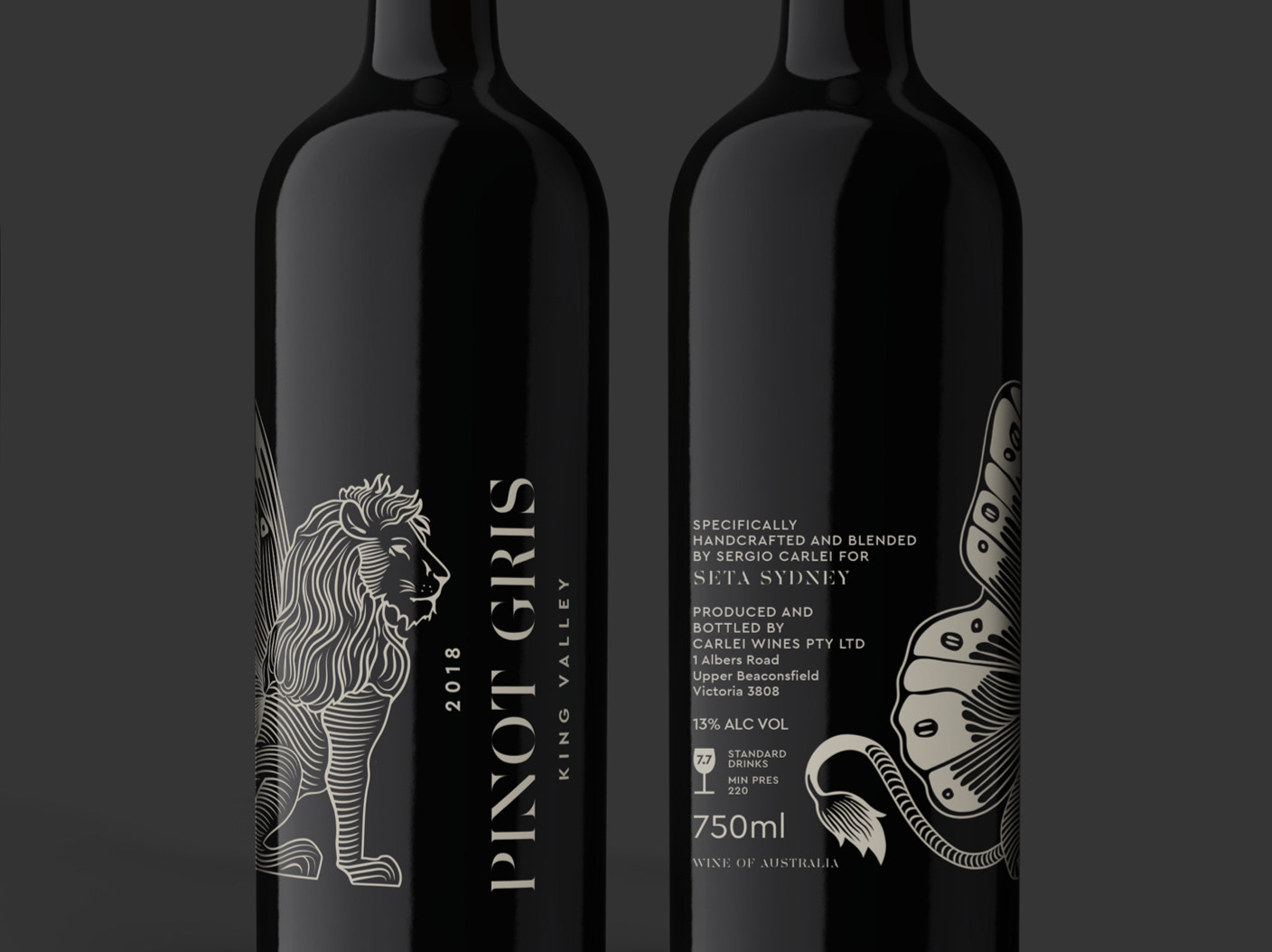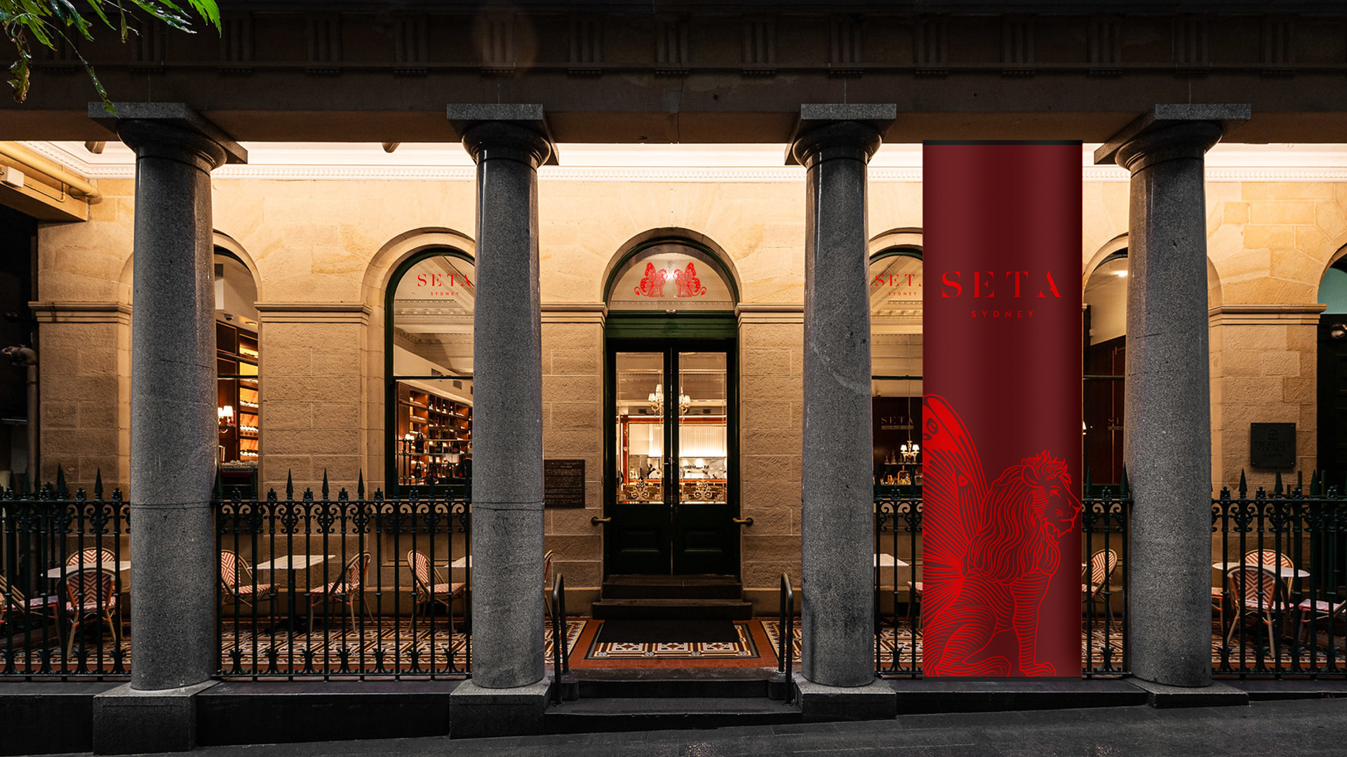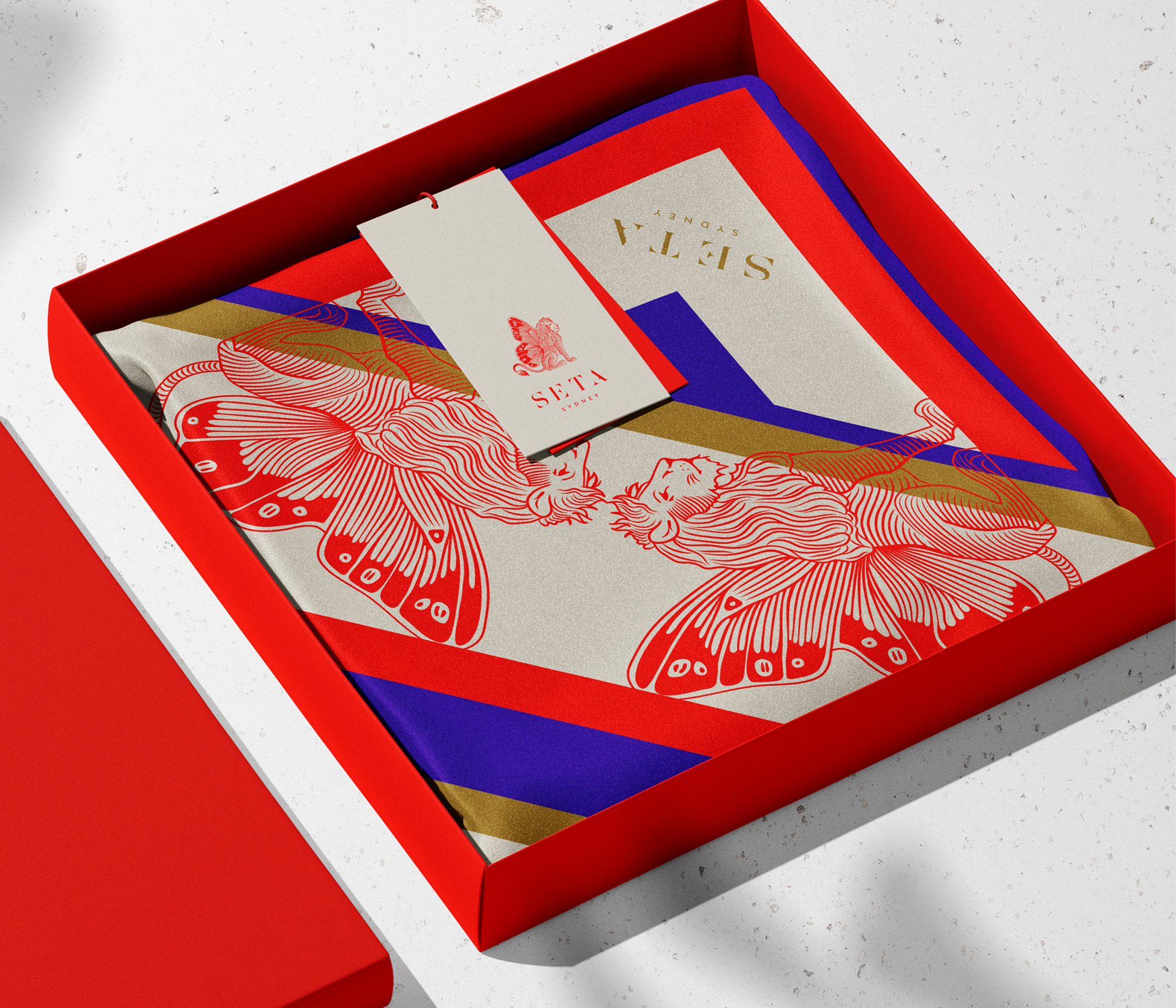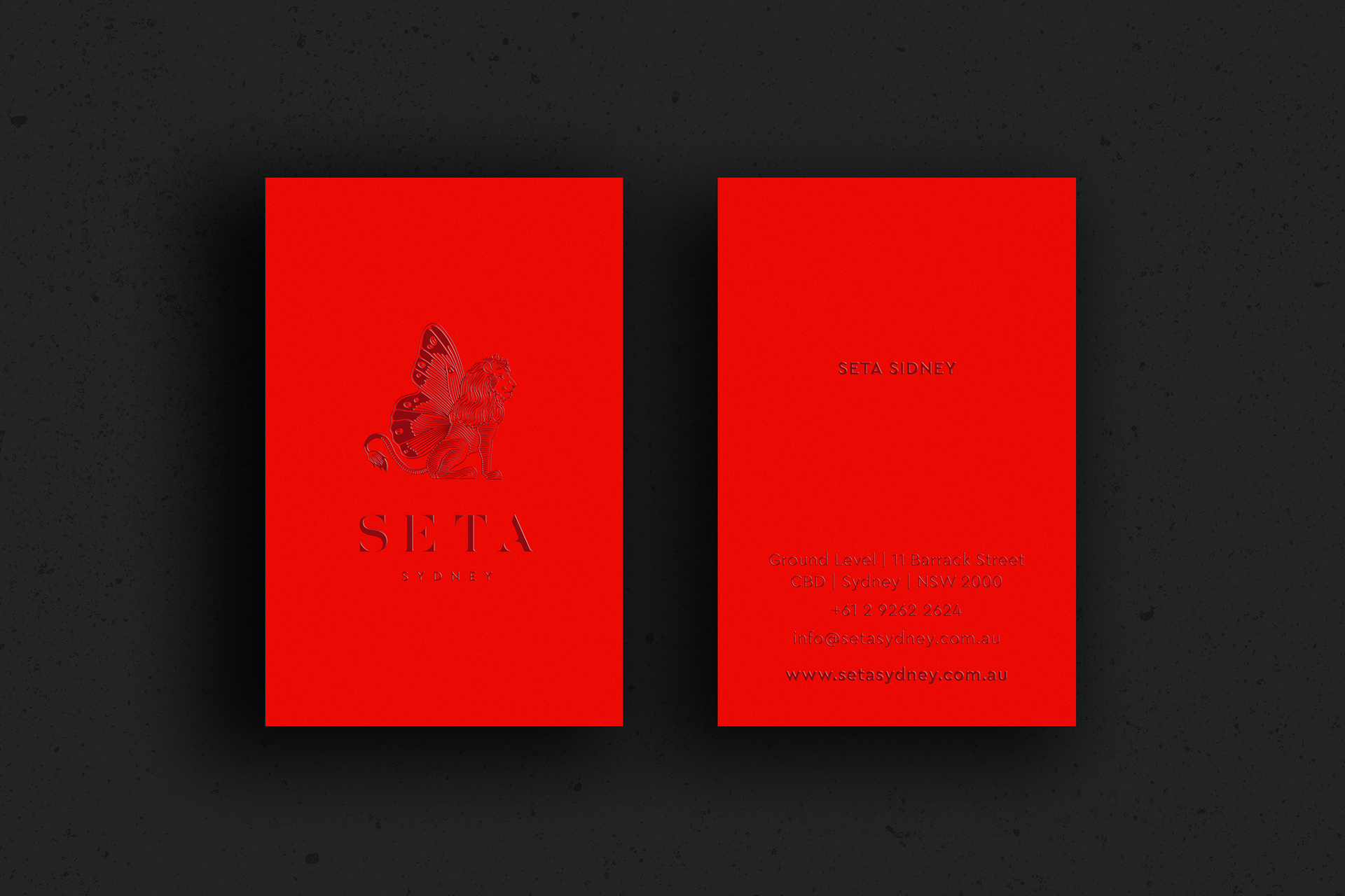 The logo concept originates from the name Seta, combining the Lion of Venice with a butterfly