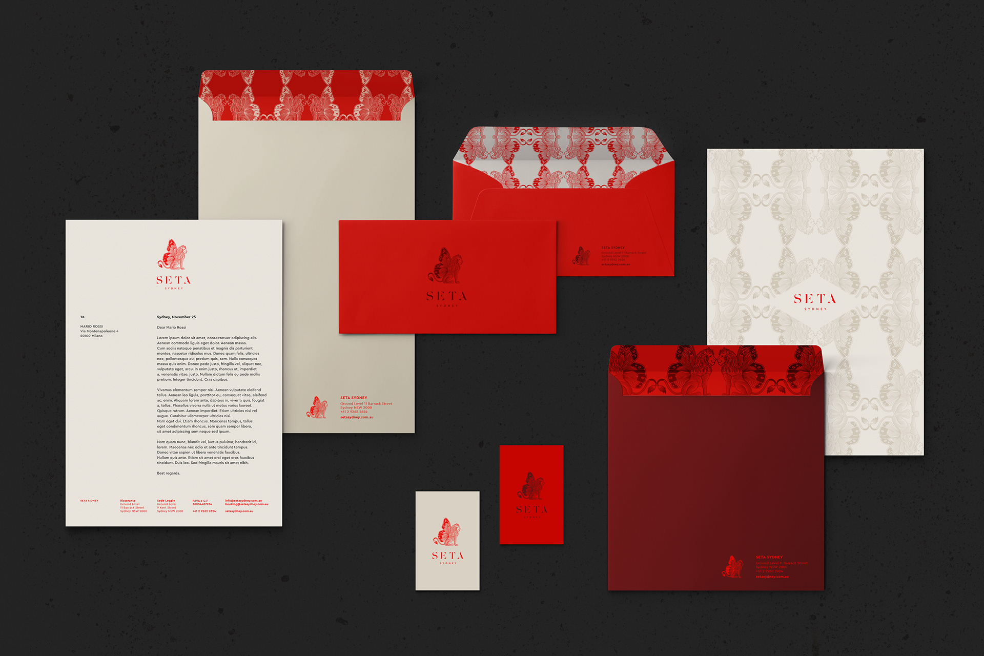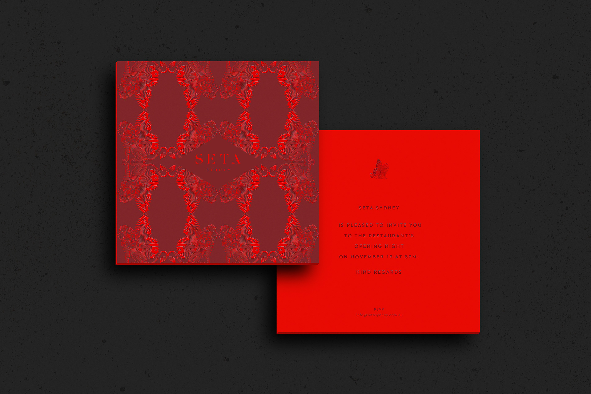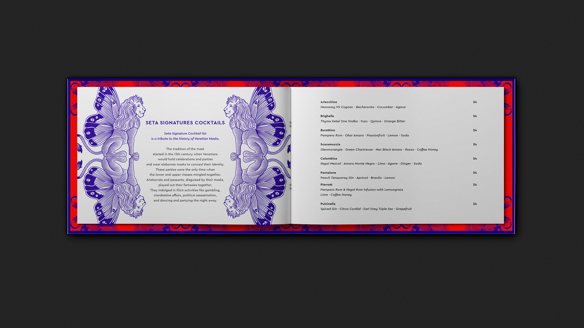 A bold colour palette dominated by red was developed and used to create the different restaurant menus, combined with a refined texture to enhance the brand’s elegant and decorative character.