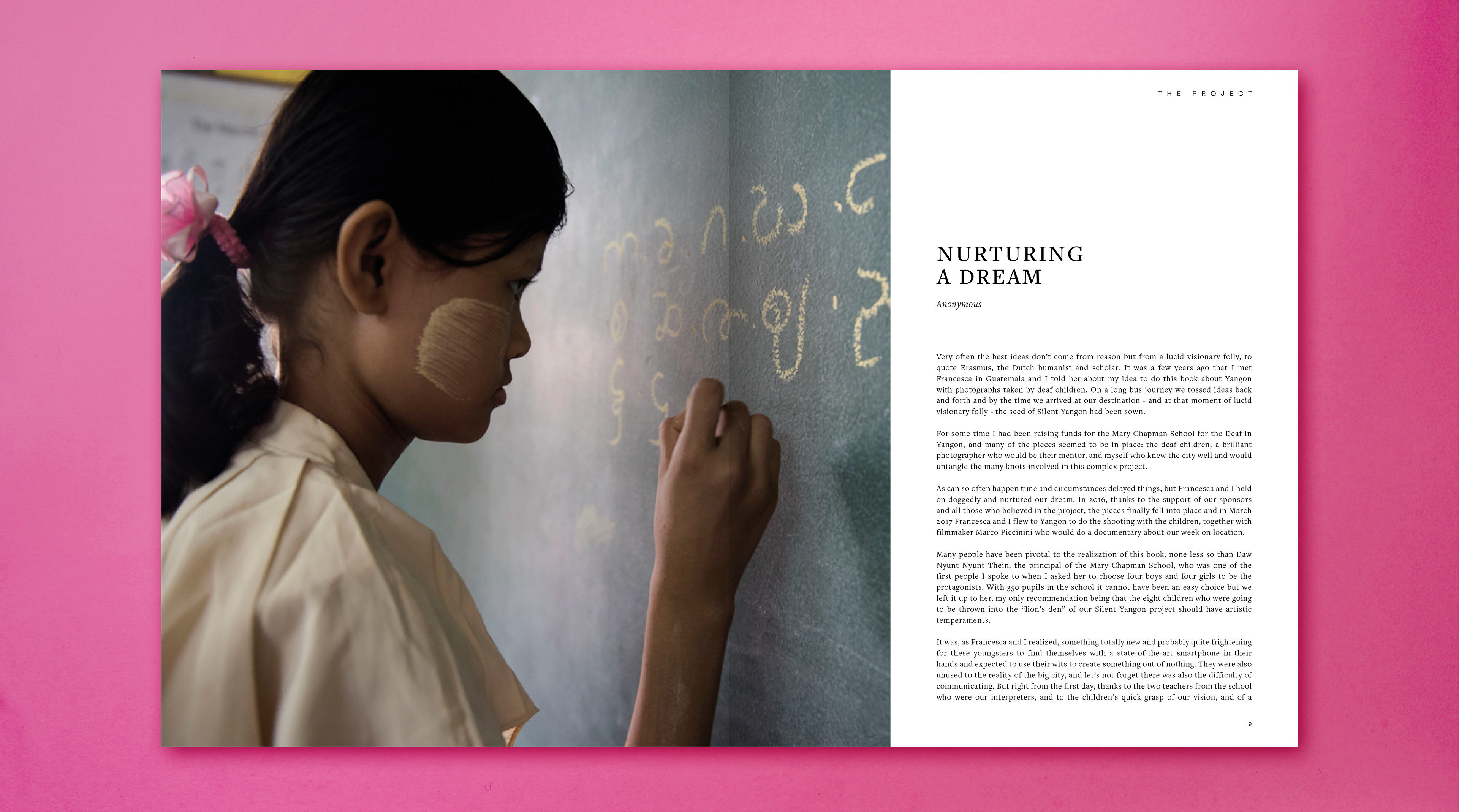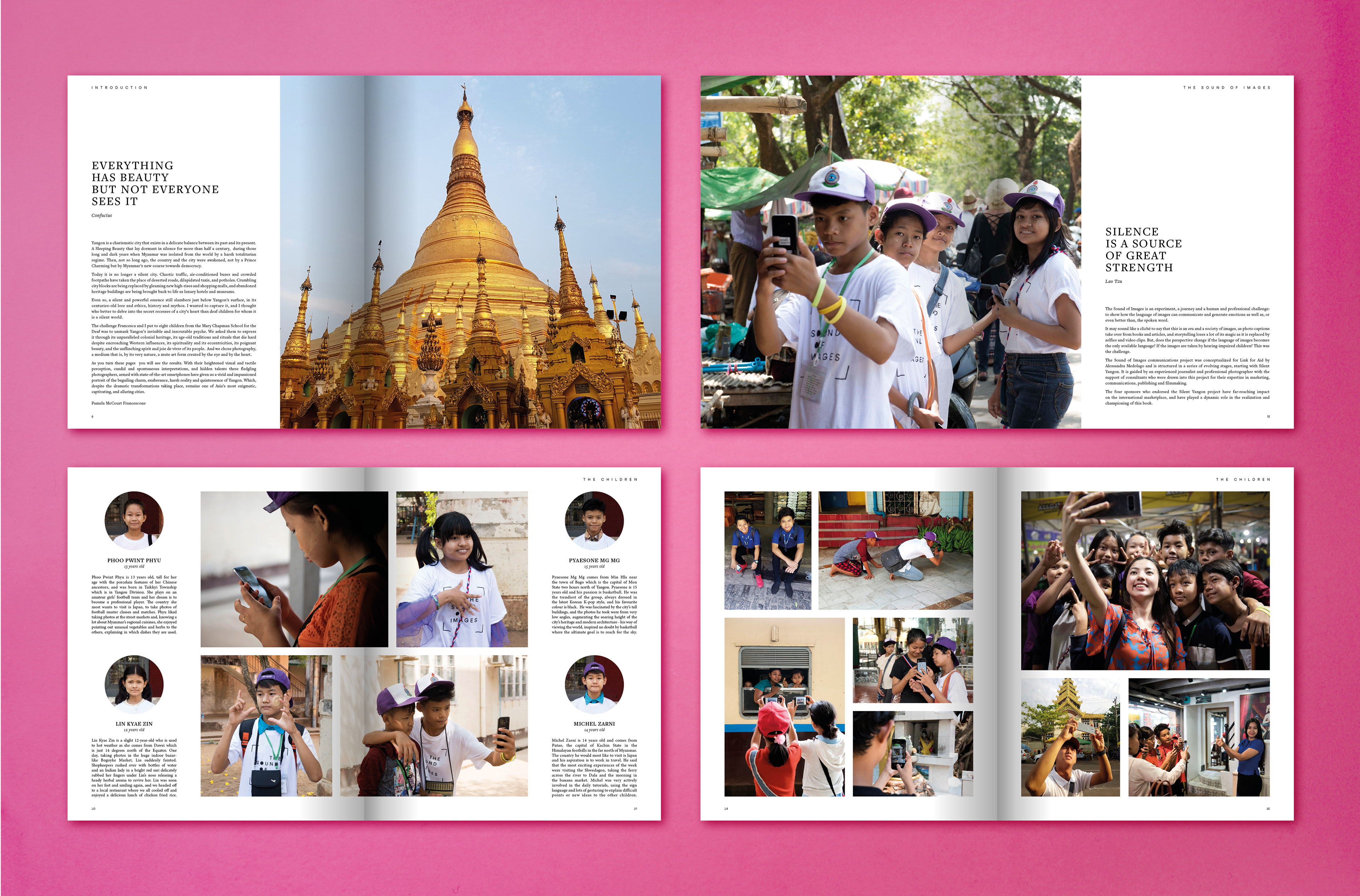 The order of the photographs and the rhythm of the layout were carefully designed to enhance the narrative strength of the images and highlight the unique point of view of the young photographers.