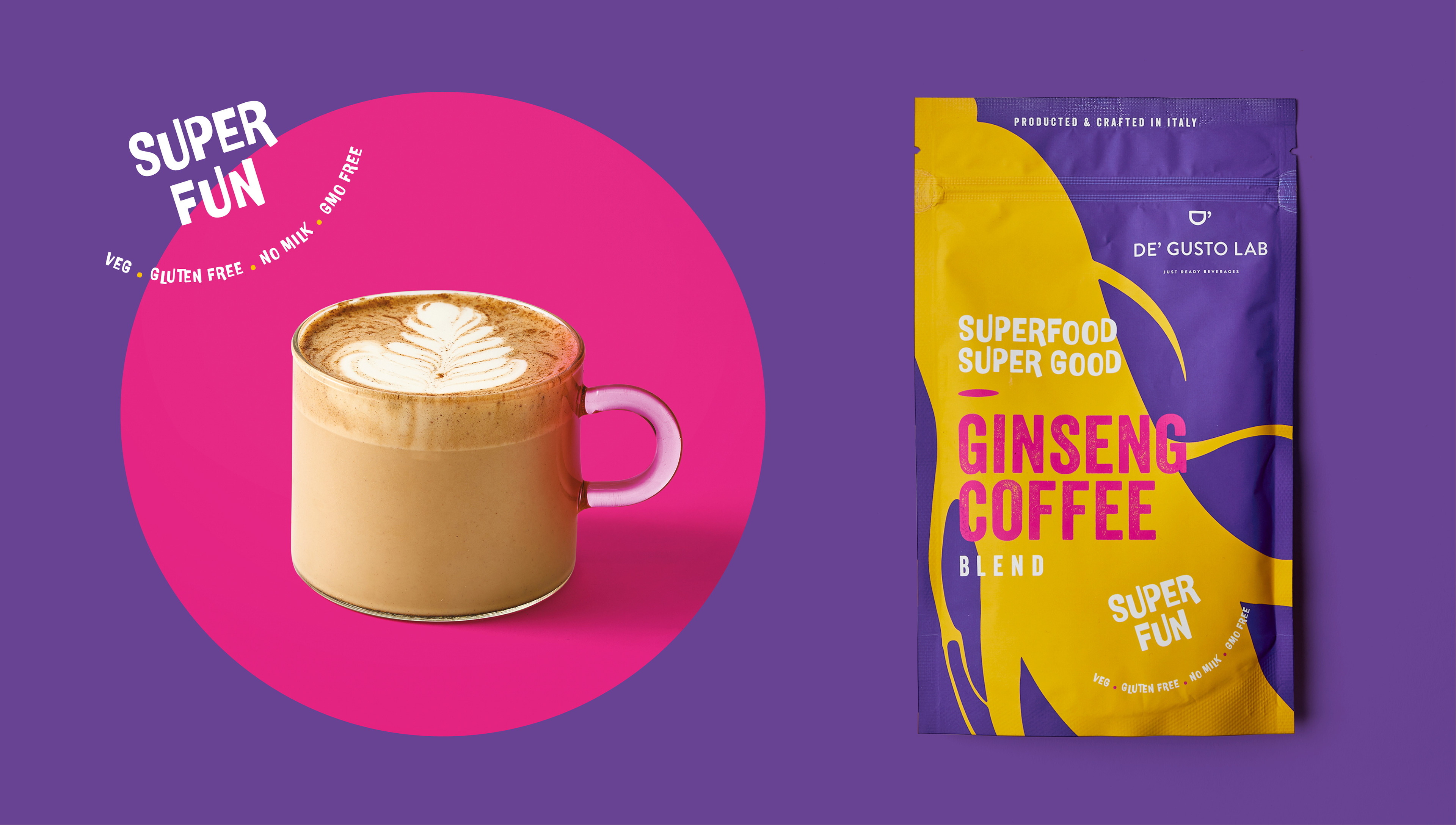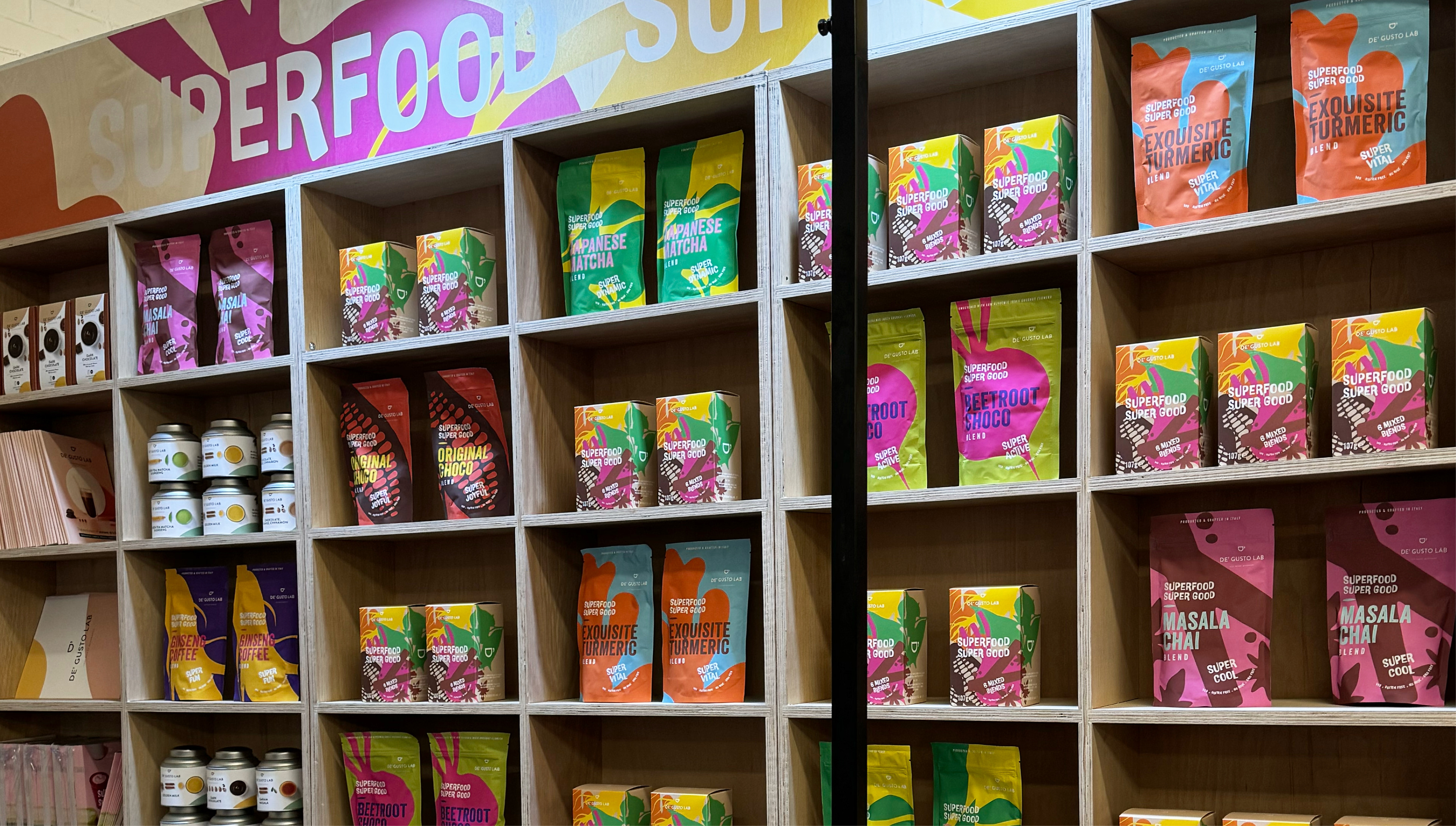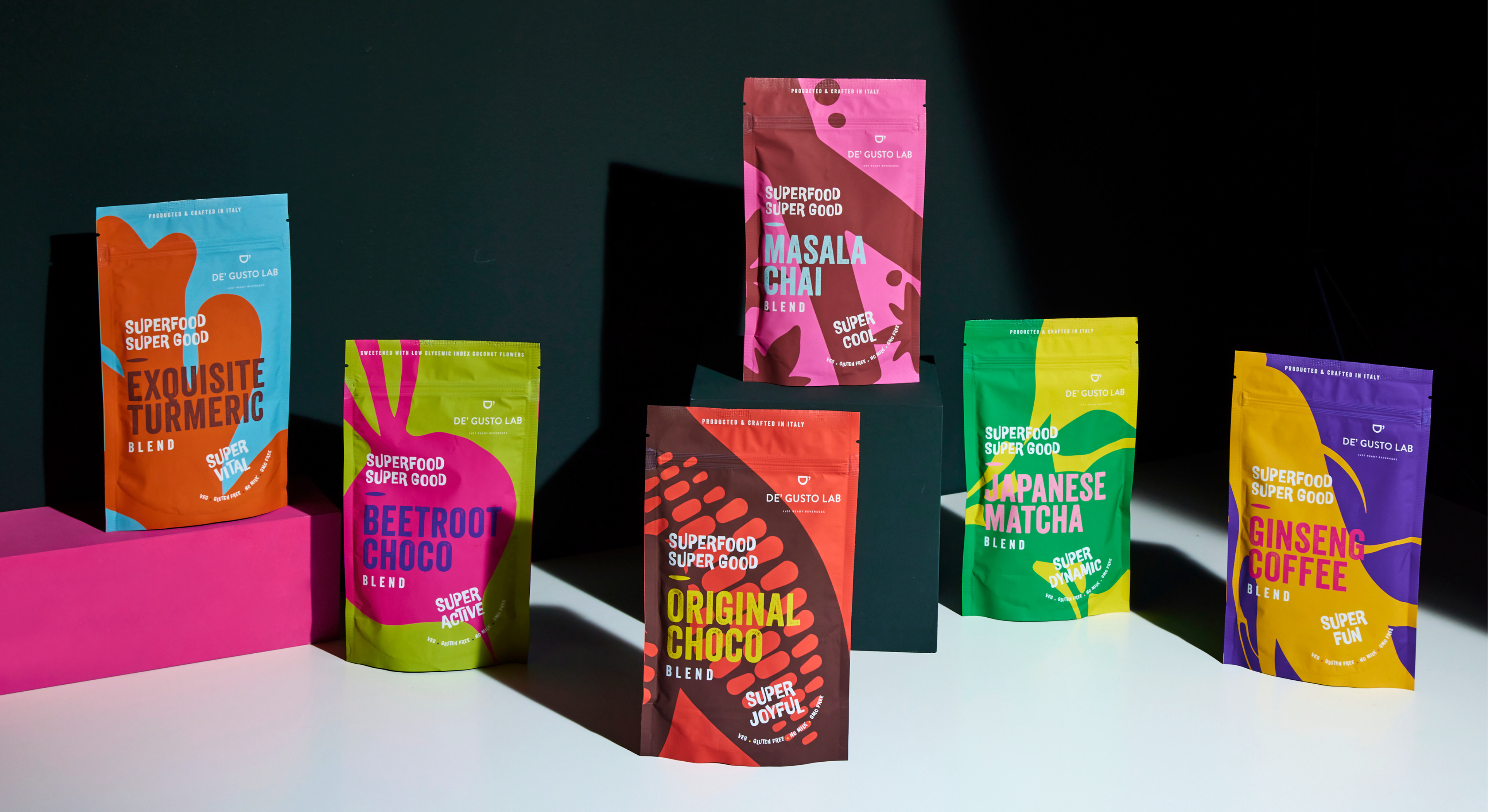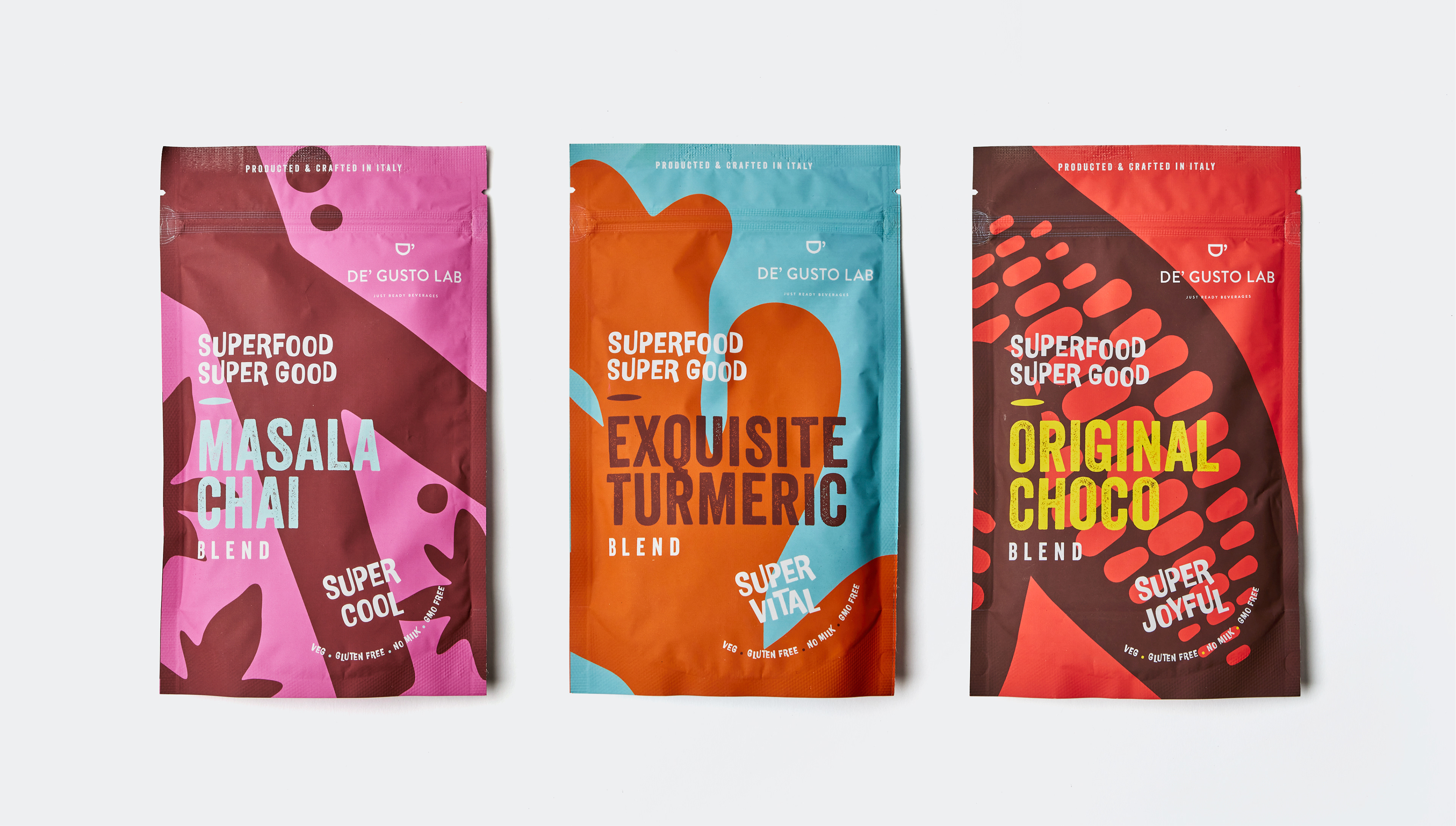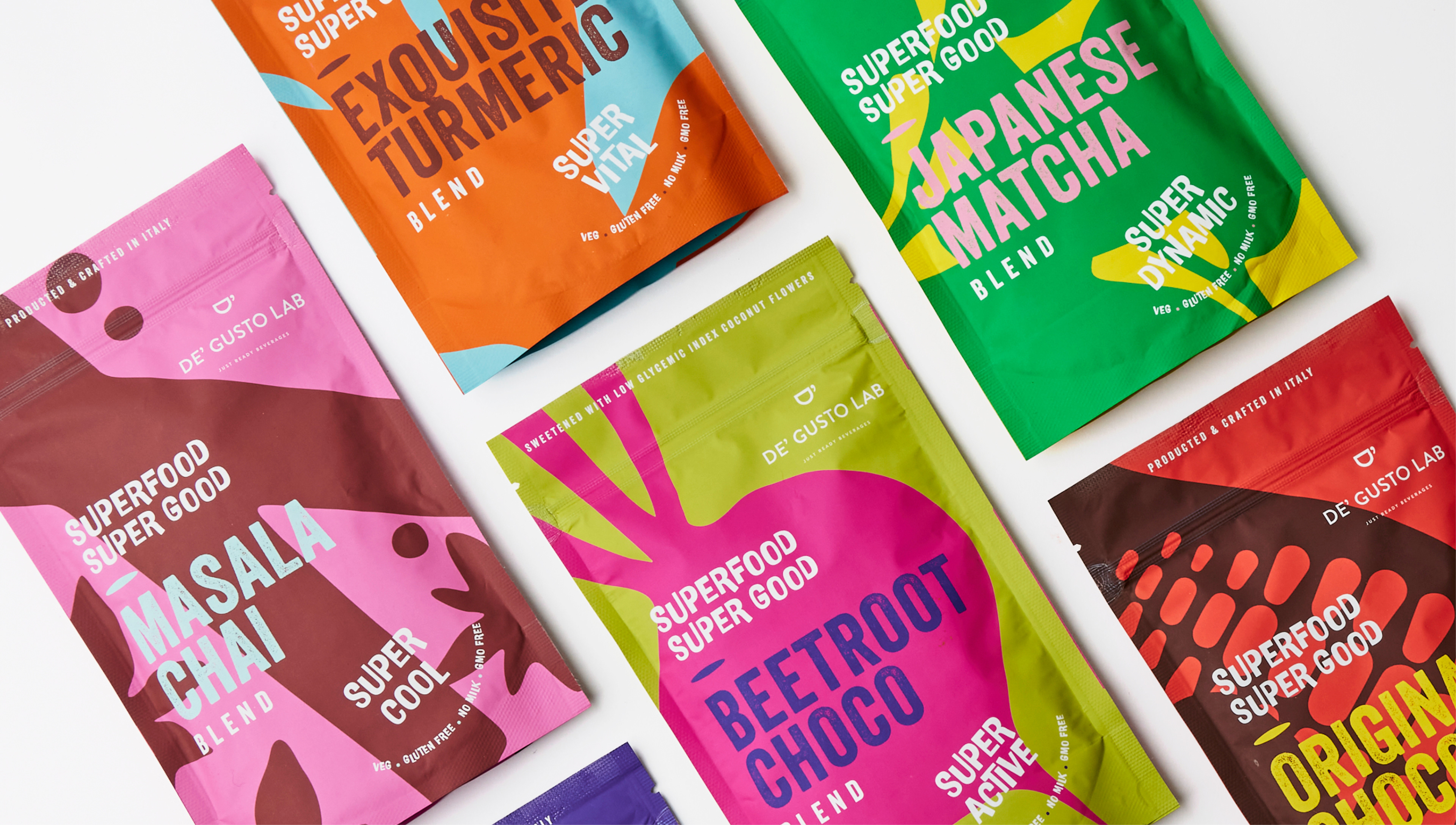 Packaging design for De Gusto Lab’s Superfood Super Good product line.